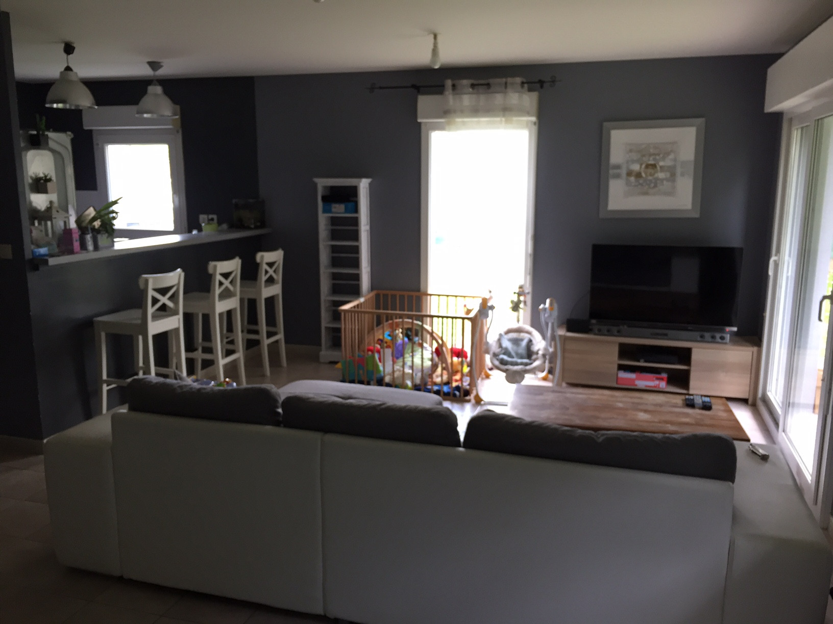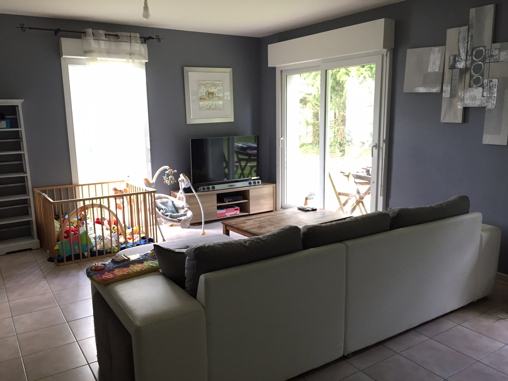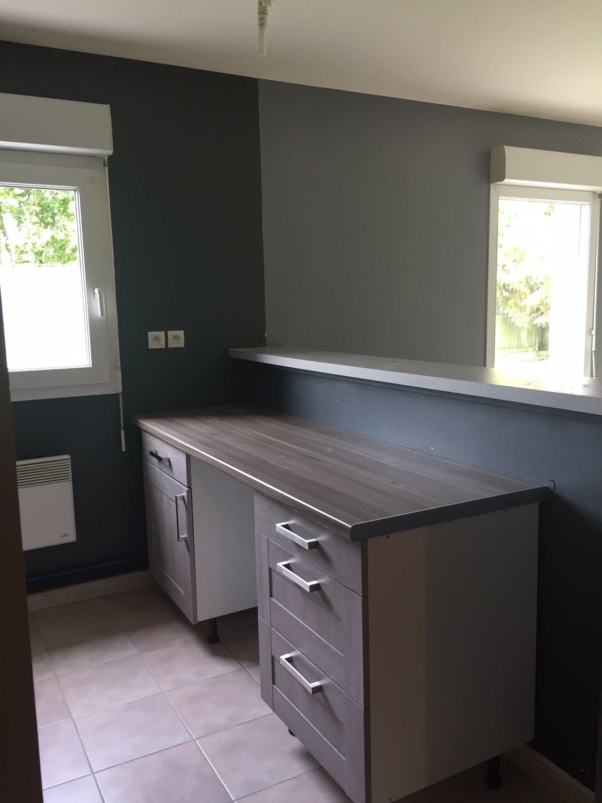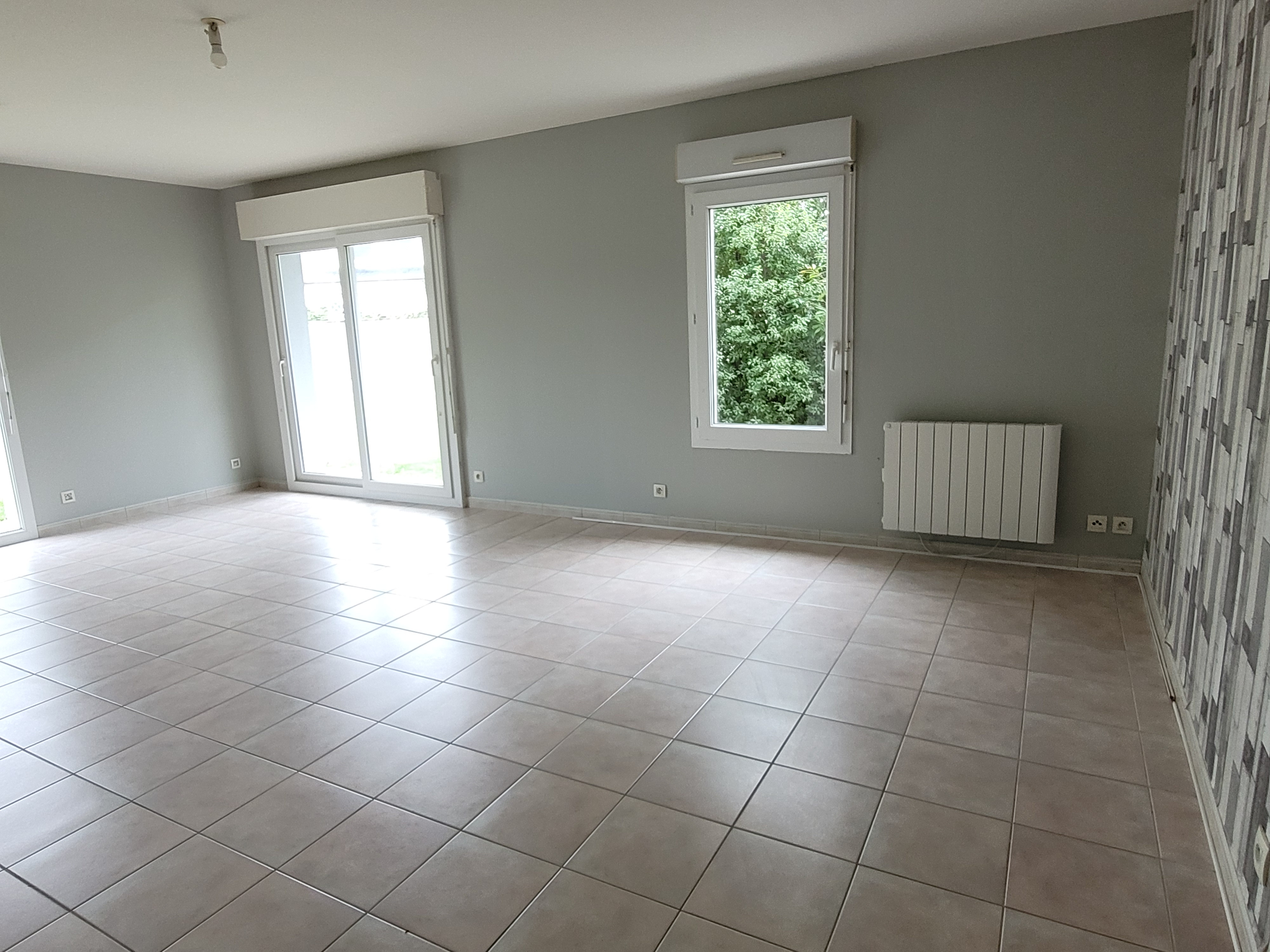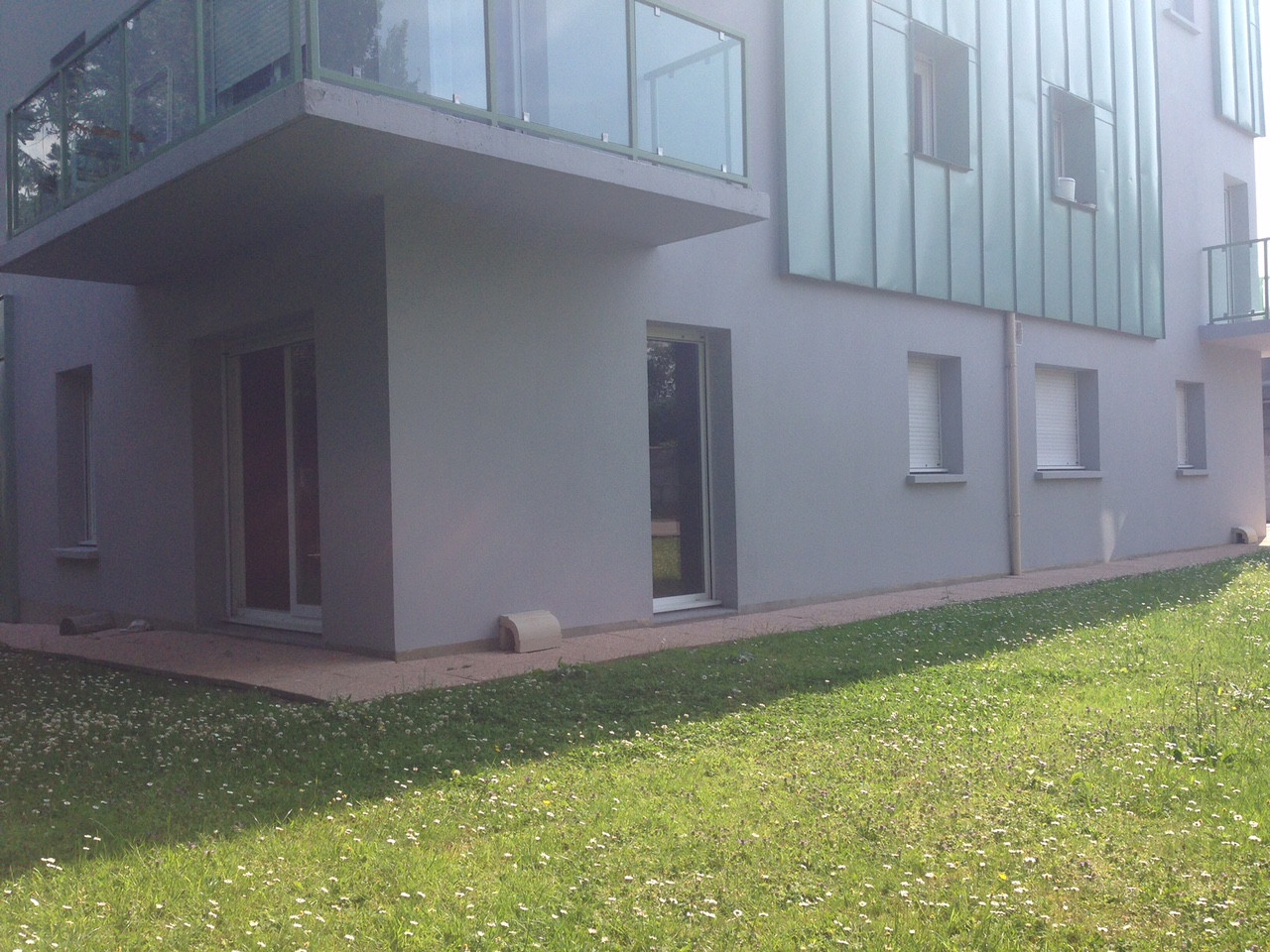Appartement T4 entre la gare et le centre-ville, en rez de jardin, comprenant une entrée avec placard, un séjour avec coins cuisine aménagée, un couloir avec placard desservant trois chambres, une salle de bains, et un WC.