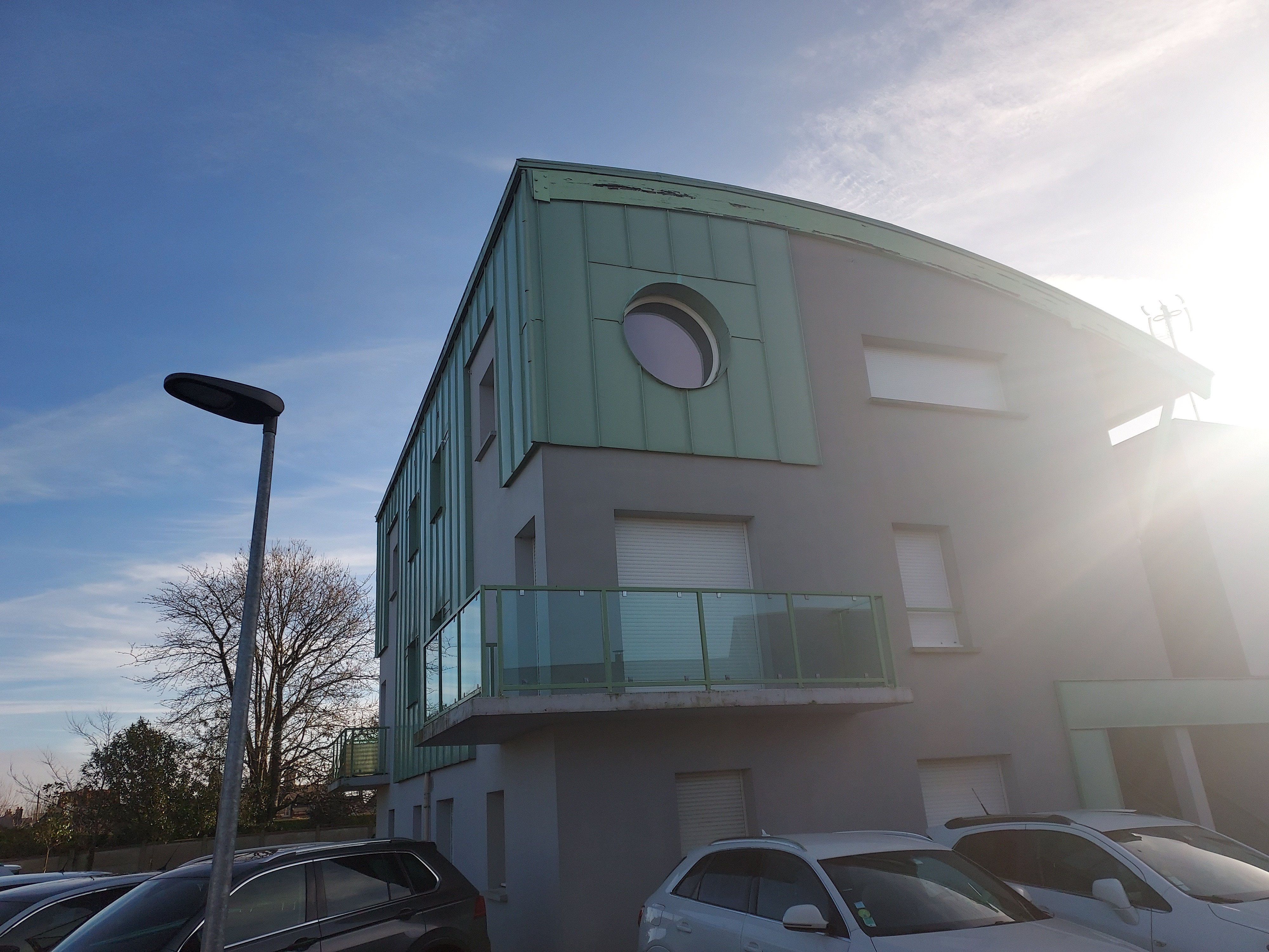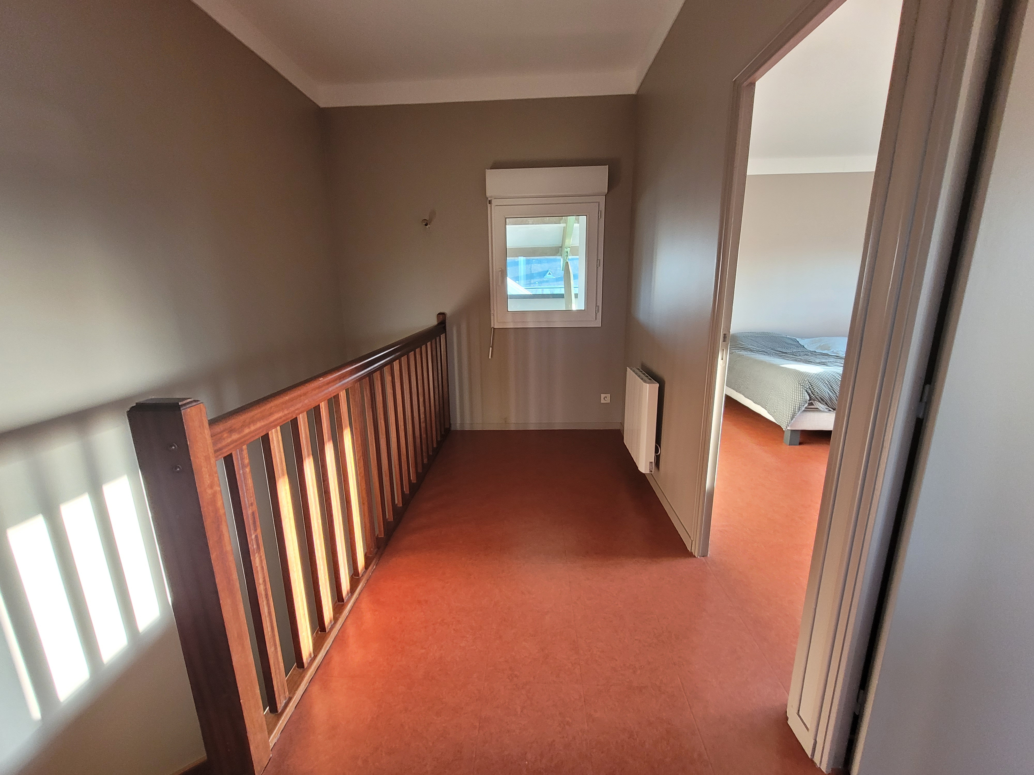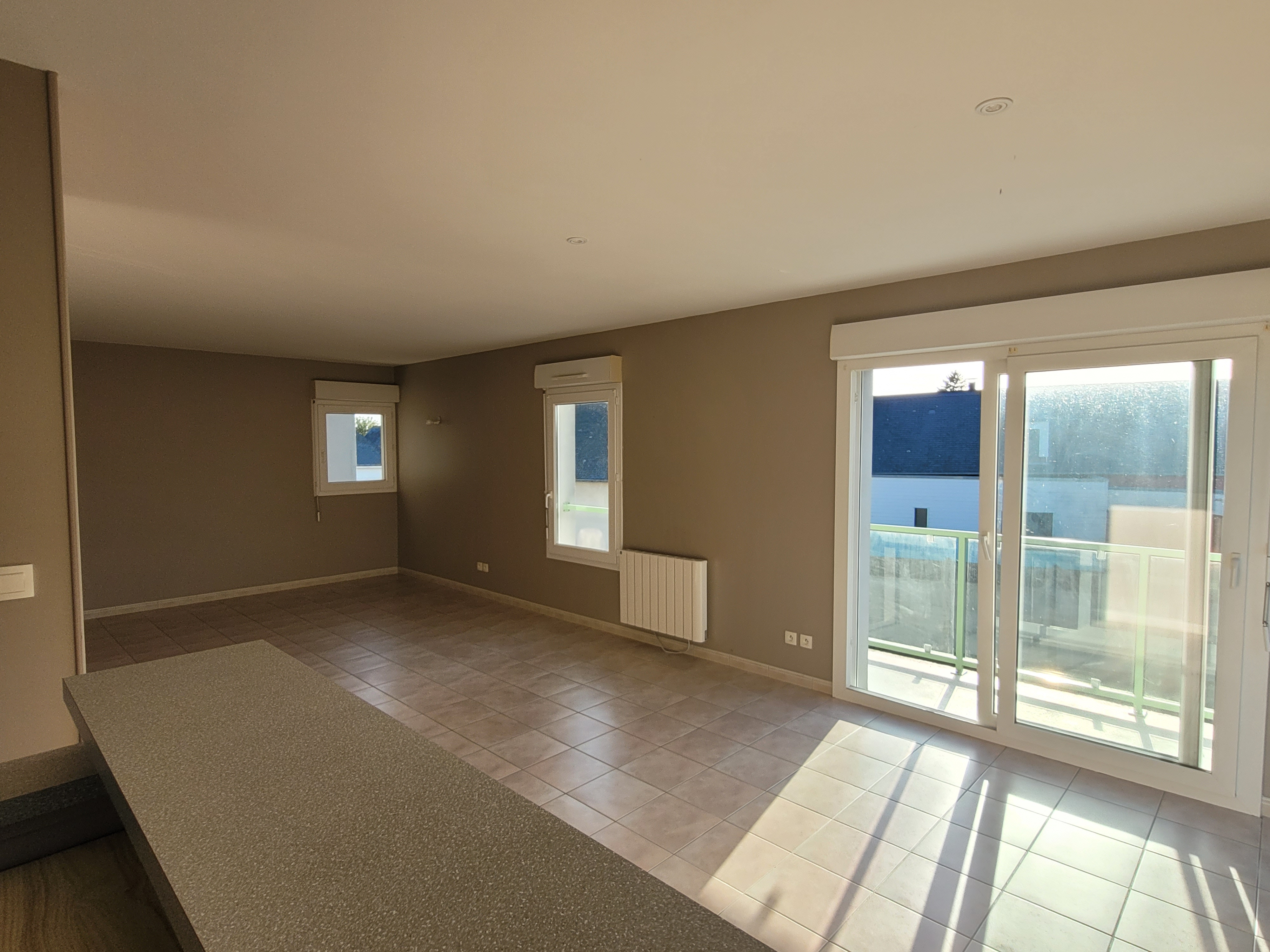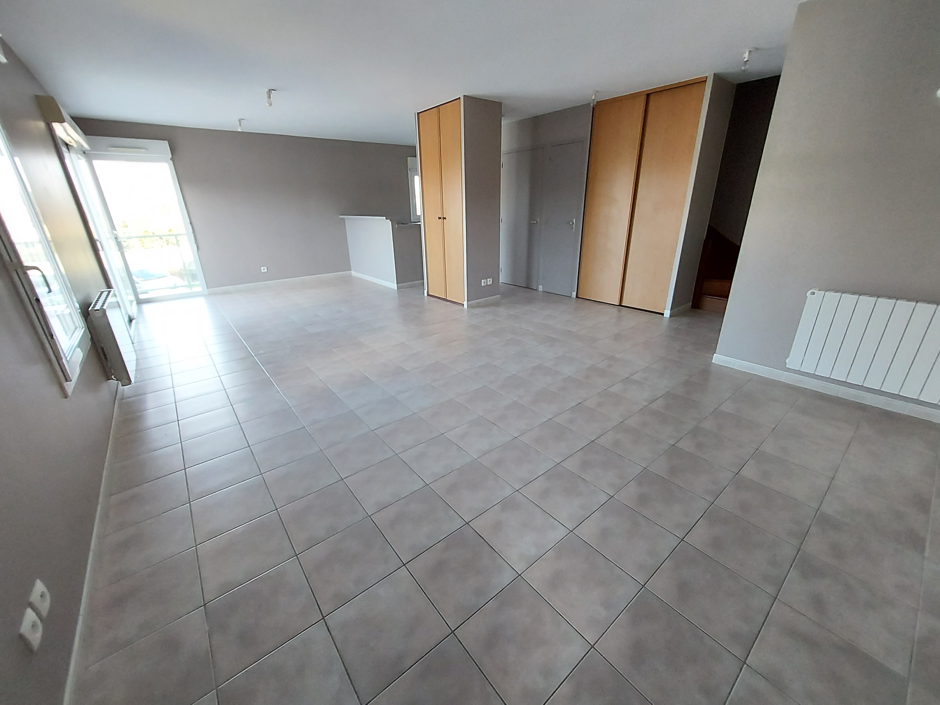 Appartement T3 en duplex comprenant entrée avec placard, séjour avec placard, cuisine ouverte aménagée, à l'étage, un palier desservant deux chambres, une salle de bains et un wc. Un emplacement de parking et une cave commune. Huisseries PVC double vitrage. Chauffage individuel électrique. Compteurs eau et électricité individuels. Tout à l'égout.
