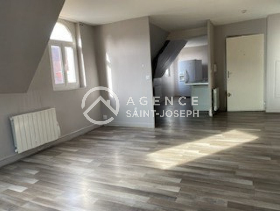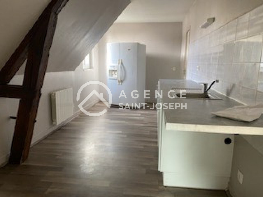 Appartement lumineux, au 2ème étage, d'une surface habitable de 82 m², comprenant entrée sur séjour/cuisine aménagée d'environ 30 m², salle de bains (baignoire et lavabo), bureau, wc, 2 chambres. Chauffage individuel électrique. Grande cave. Réf 6731