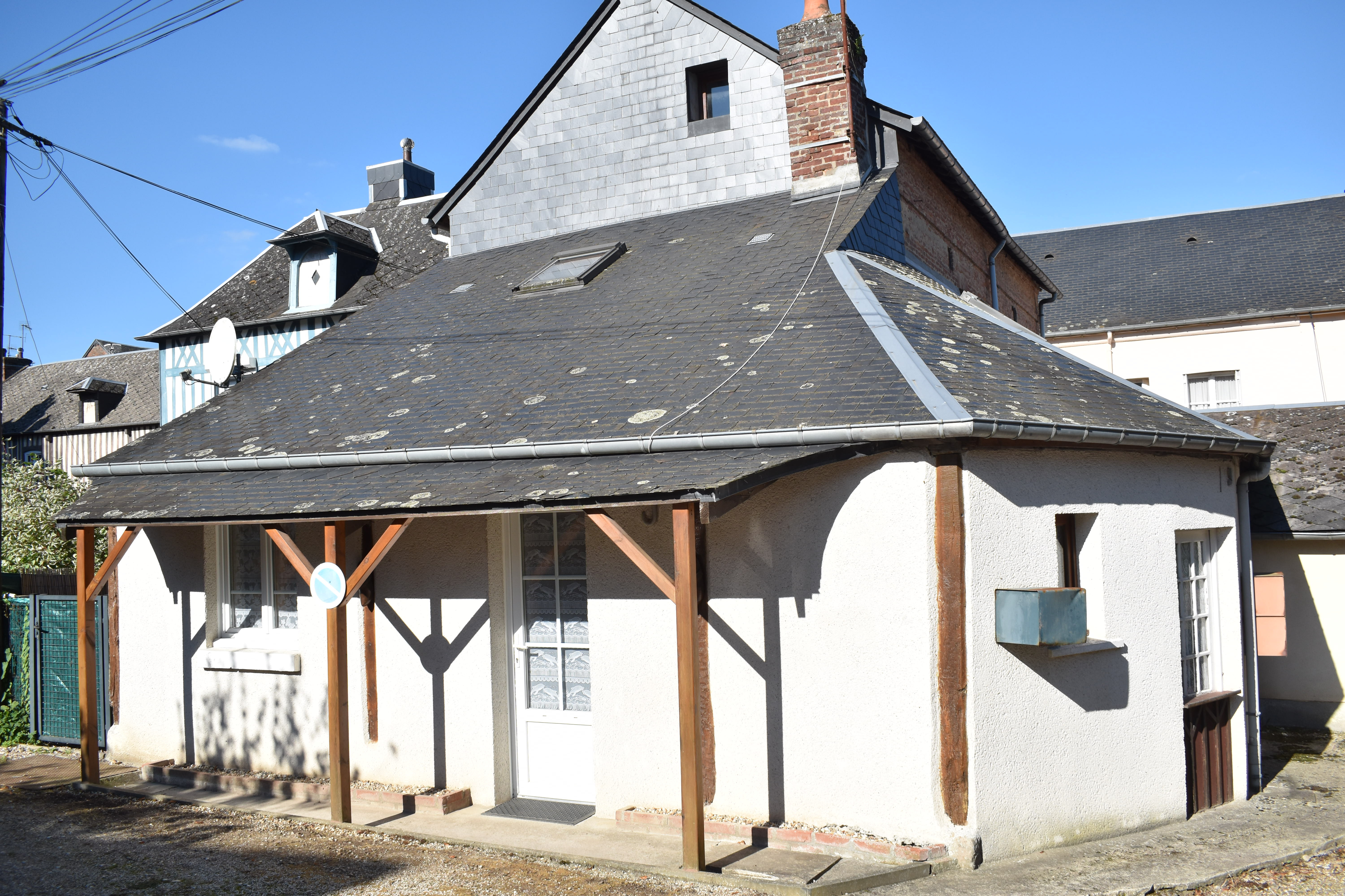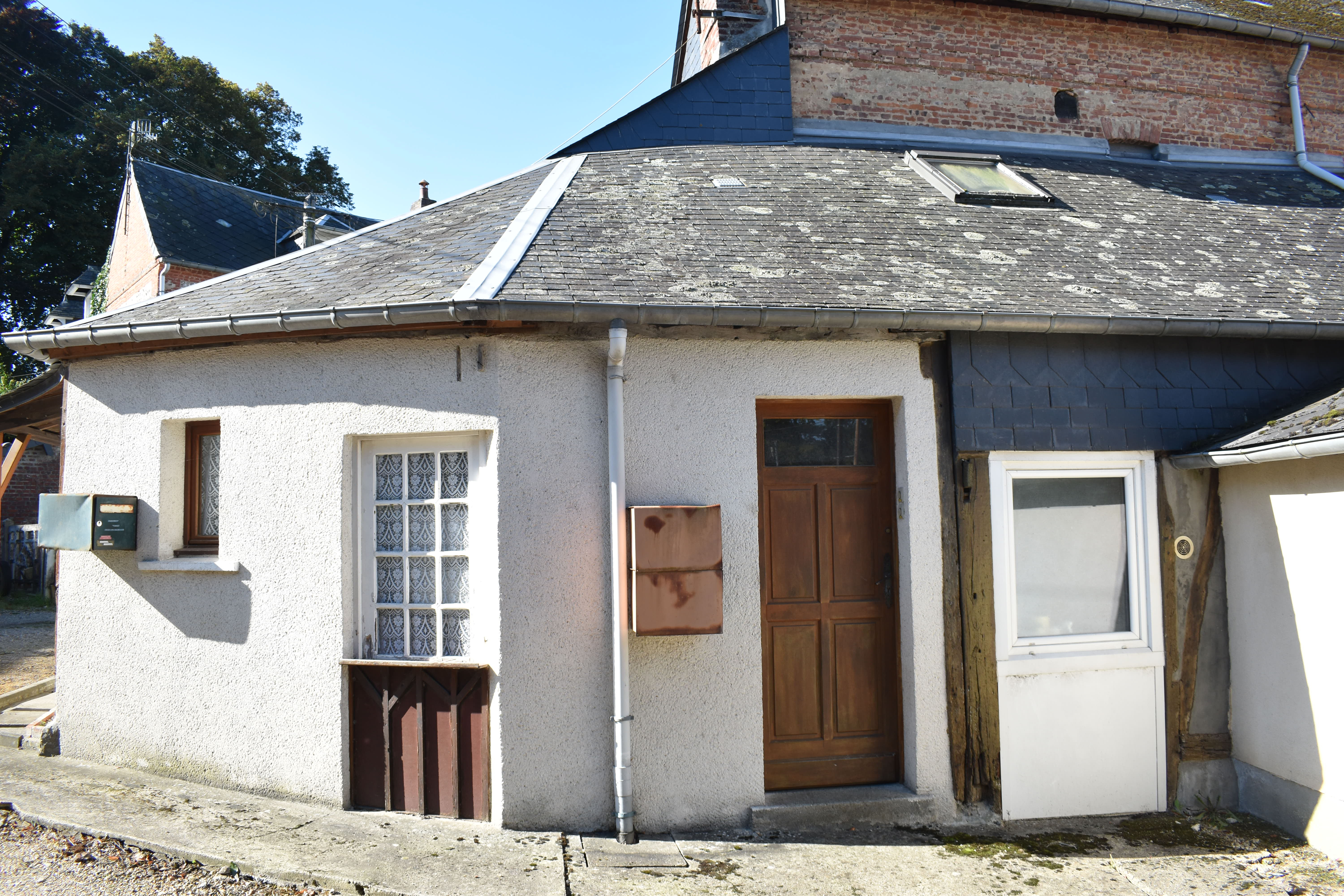 - 1 petite maison de 32 m² avec cour, coin repas, petite cuisine, 1 chambre, sdb et wc, loué 310 euros.