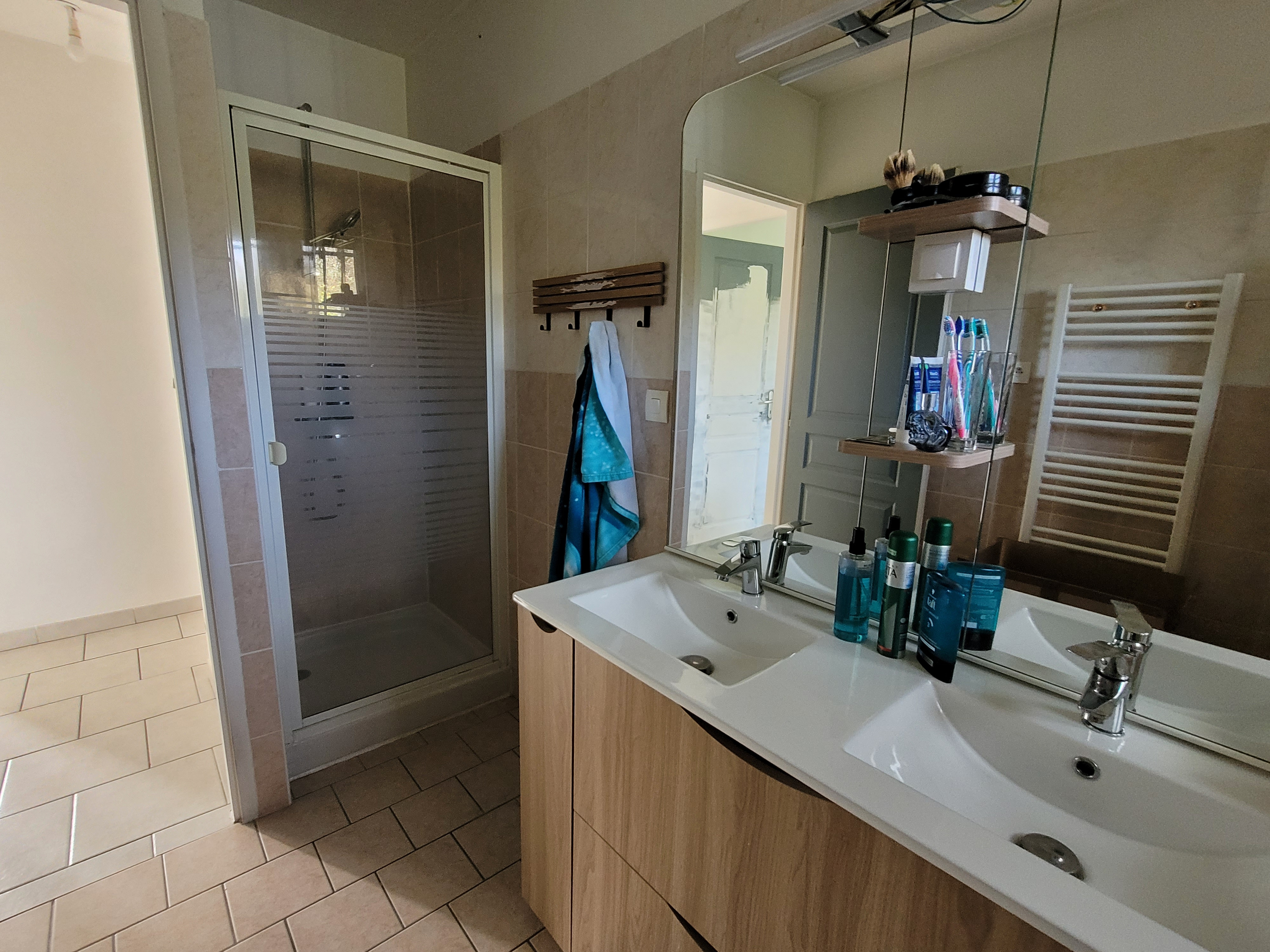 - à l'étage : deux grandes chambres en enfilade (de plus de 15 m² chacune) et un dressing ;