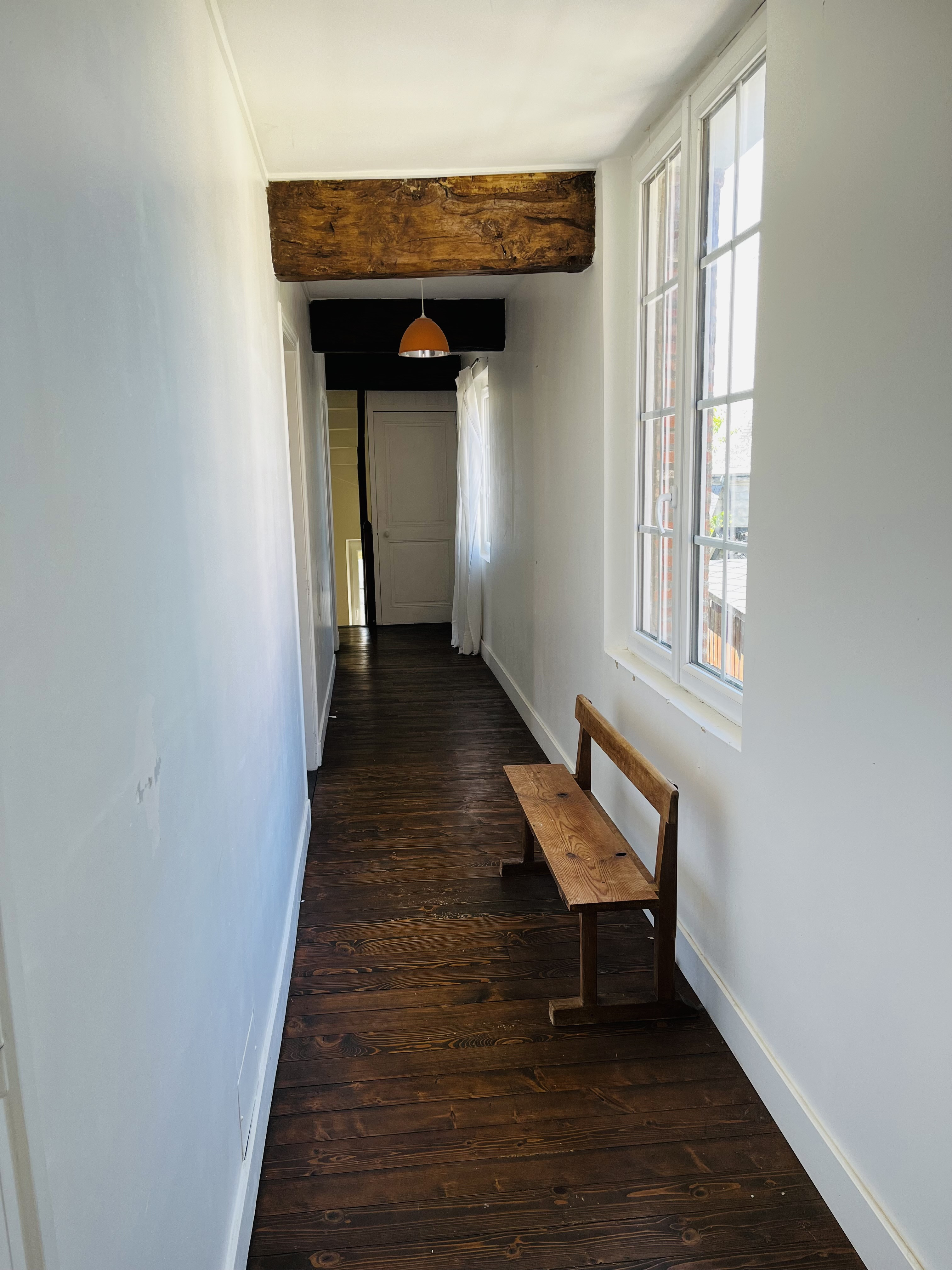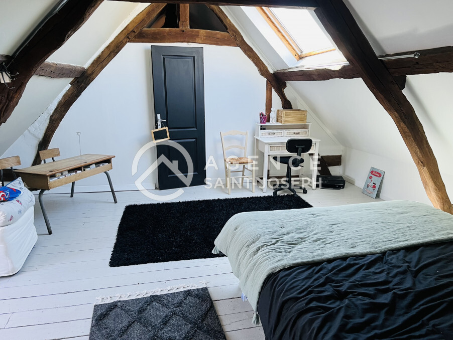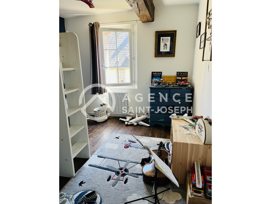 Réf. 7065 - Centre bourg tous commerces, au calme, ancienne école rénovée avec goût offrant un vestibule, un salon avec poêle à bois, une salle à manger, une cuisine aménagée, un wc avec lave-mains et grand couloir au rez de chaussée; trois chambres parquetées, salle de bains avec wc, salle d'eau avec wc et galerie au premier étage; chambre, salle de jeux et grenier au deuxième étage. Jardin et terrasse. Tout à l'égout. Cave voutée. Pas de travaux nécessaires.