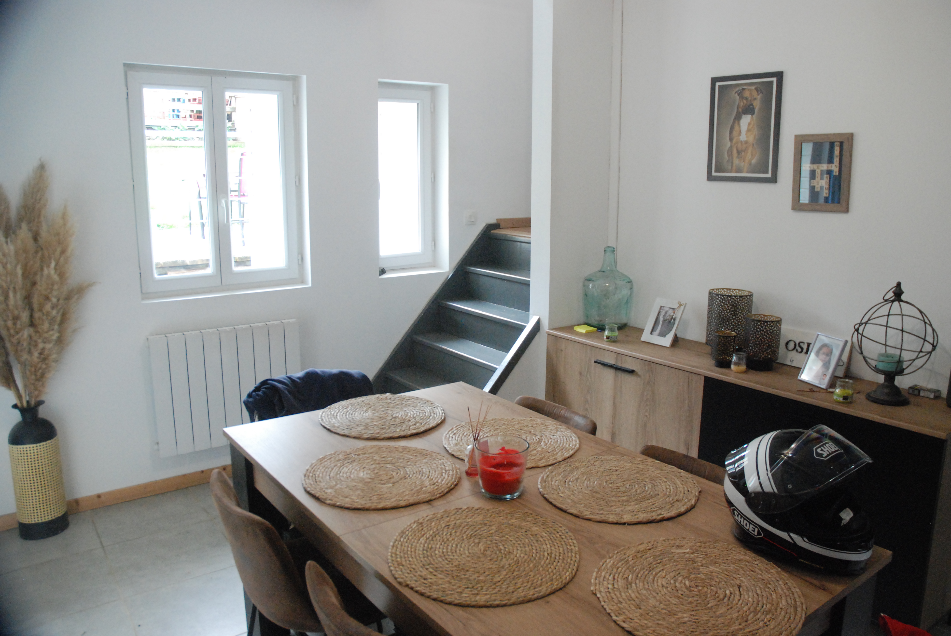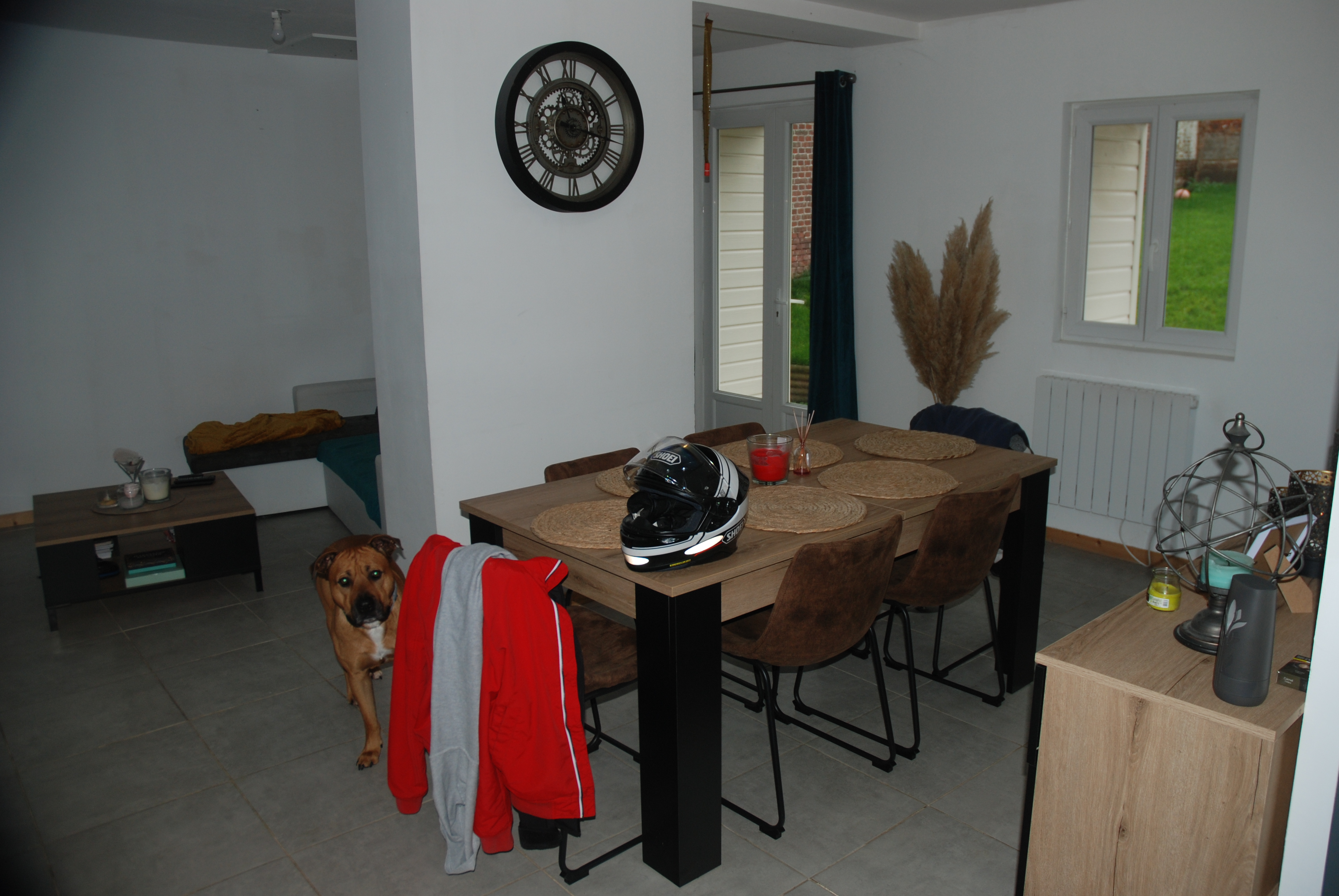 Centre ville d'Yvetot, maison jumelée de plain-pied avec jardin, comprenant : une entrée par une grande cuisine aménagée et équipée, un séjour, un salon ou chambre d'enfant et une autre belle chambre, salle de bains, WC. Menuiseries en double vitra...