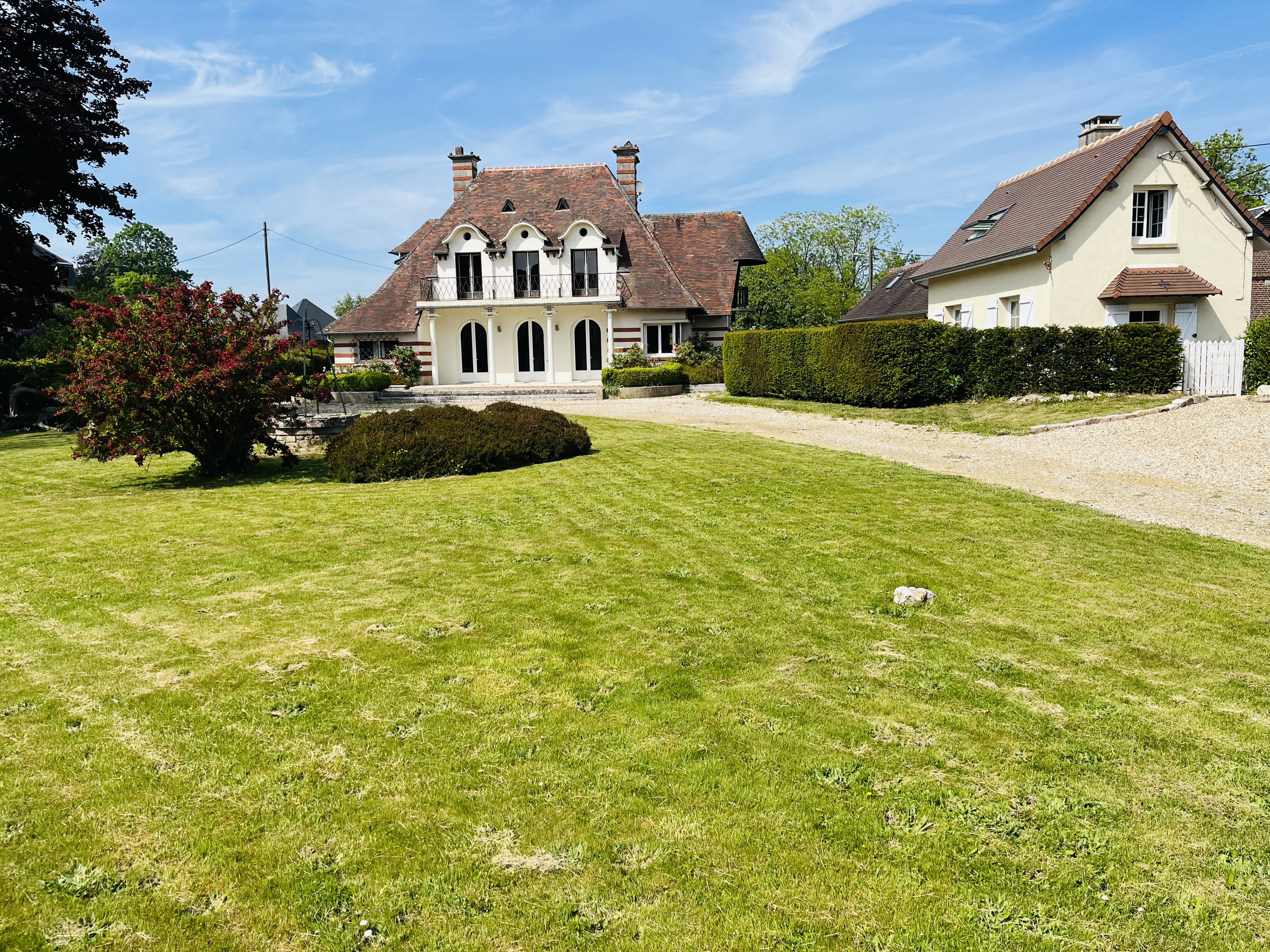 Huisseries bois double vitrage et huisseries PVC double vitrage. Chauffage au sol au gaz de ville. Grand terrain de 1900 m².