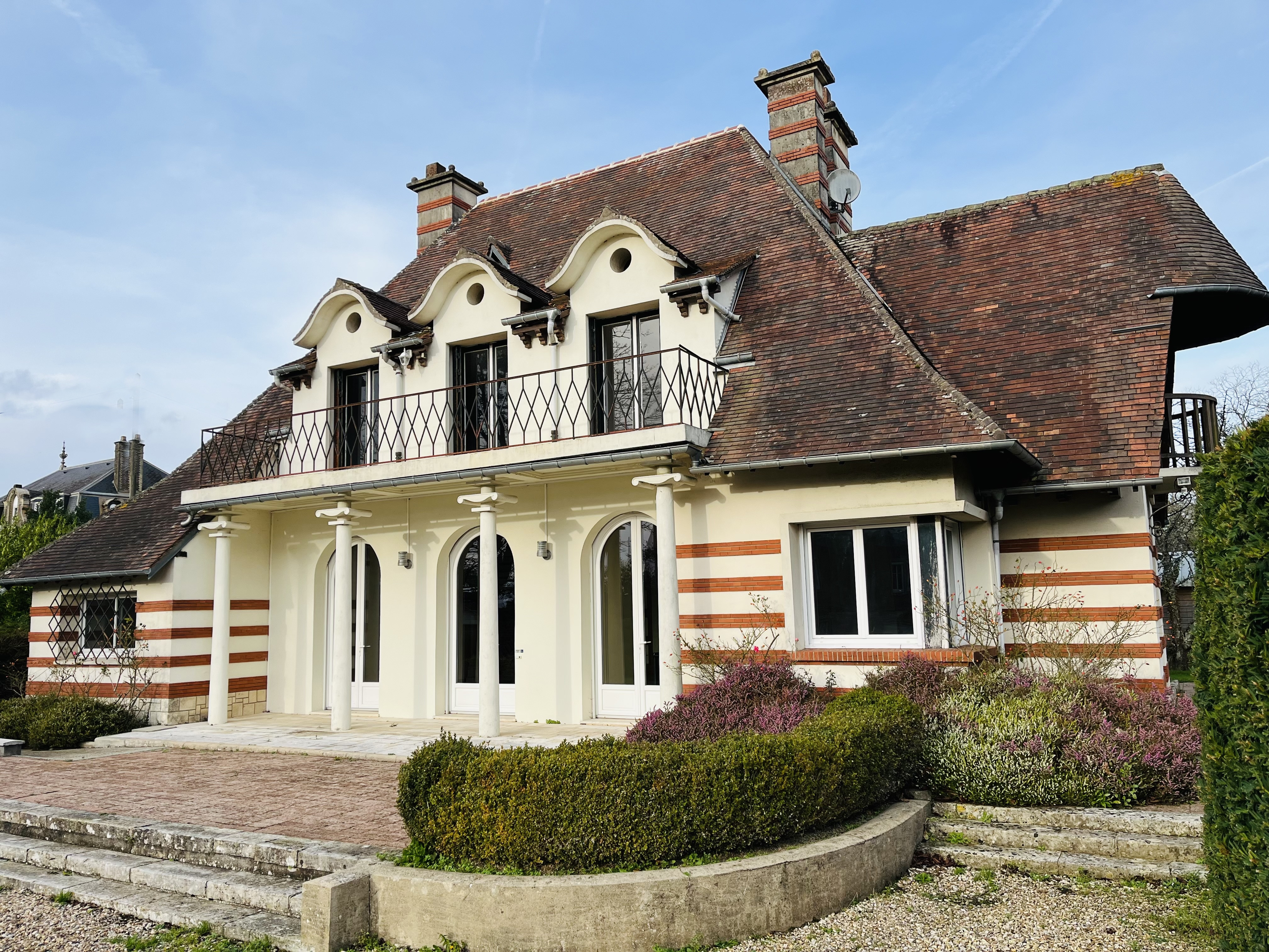 Réf. 6945 - Demeure à l'architecture notable en plein cœur de Doudeville, à 15 minutes de la mer, de 191m2 offrant au rez-de-chaussée, une belle entrée, un grand salon de 30m2, une salle à manger de 25m2, une cuisine aménagée équipée de 10m2. Trois autres pièces de 15, 16 et 7 m2 pourraient être transformées en chambres et en dressing. Avec une salle de bains de 5m2 et le WC, la maison deviendrait habitable de plain-pied.