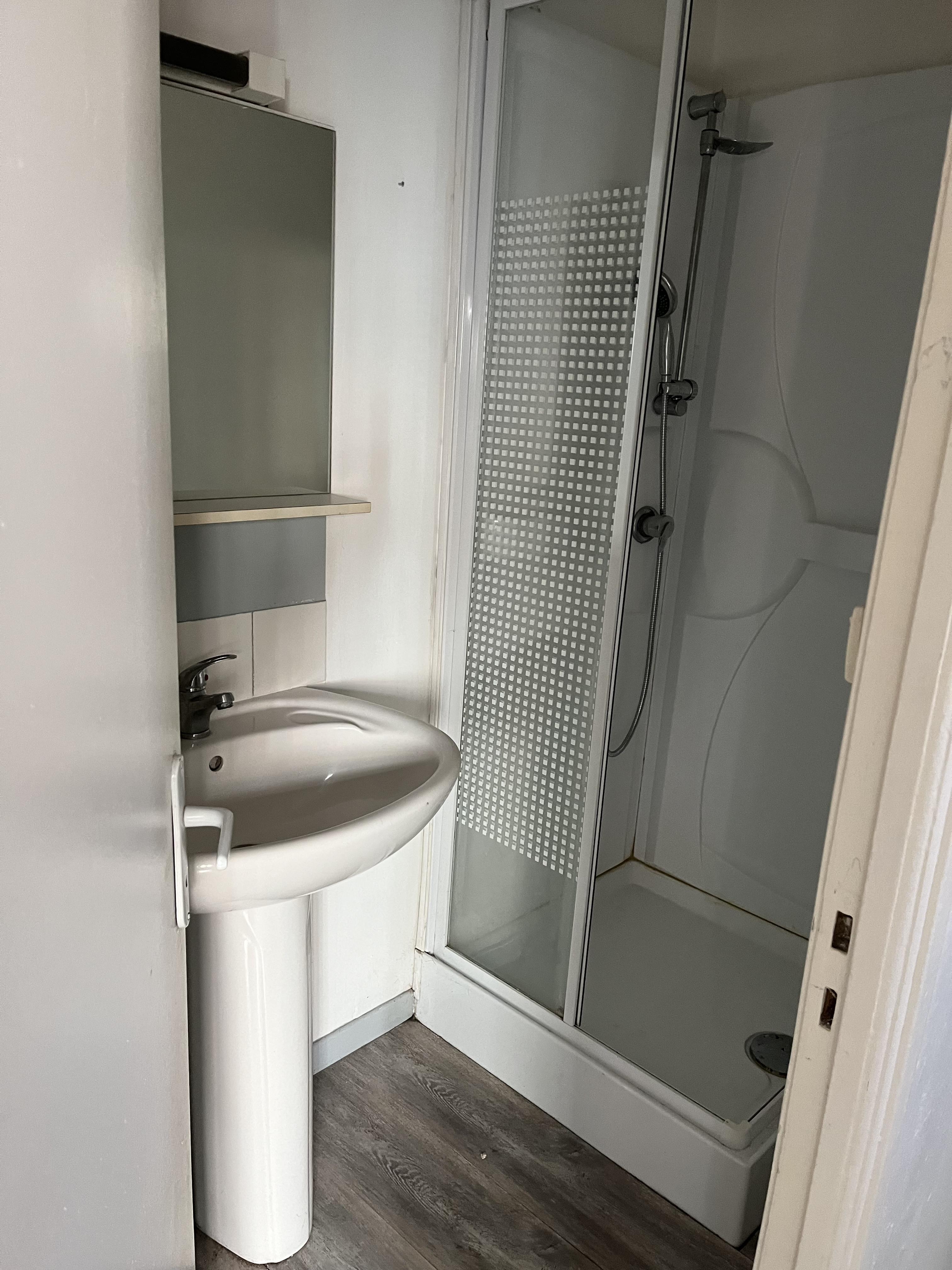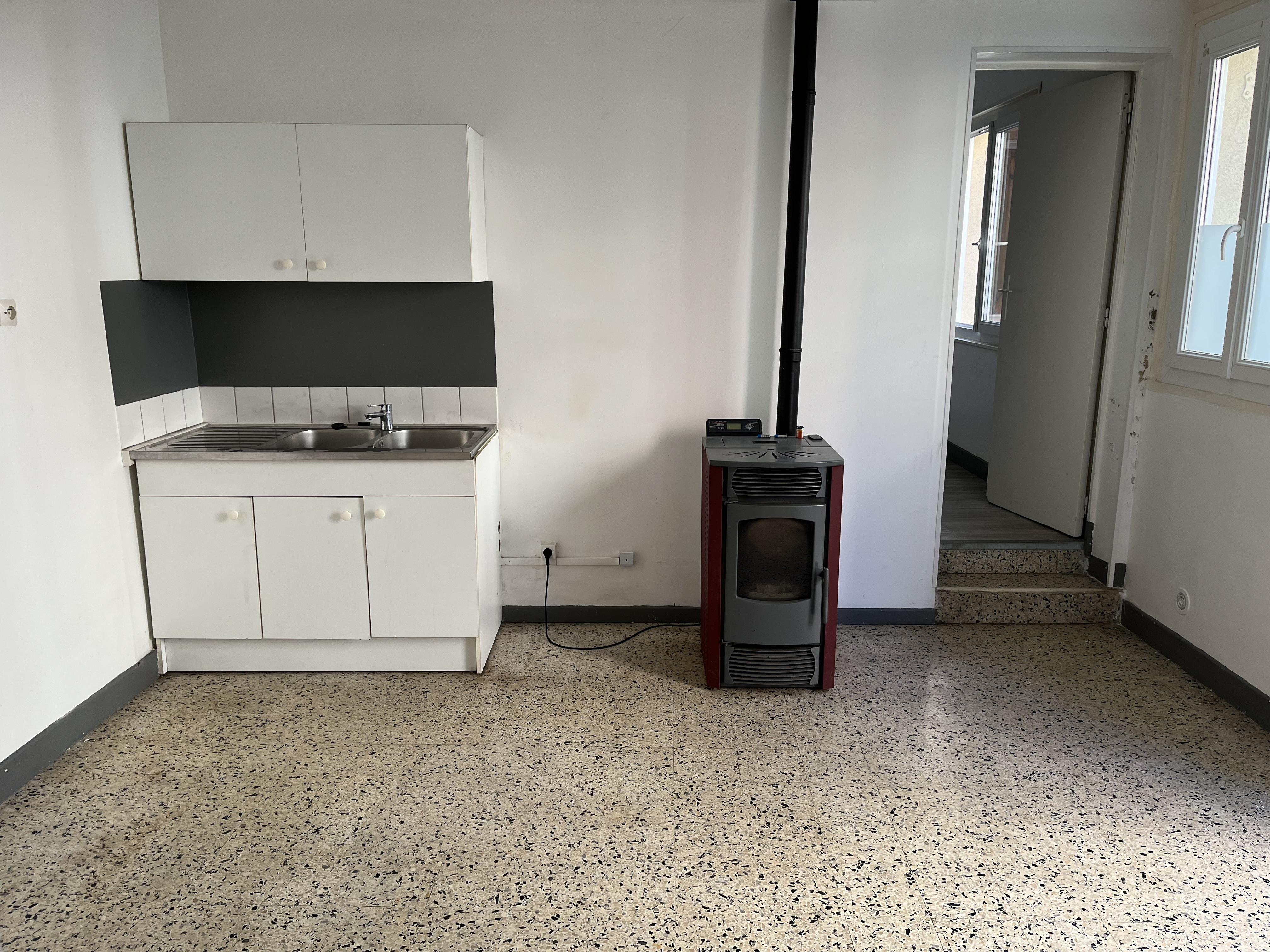 Réf. 7006 - Centre bourg tous commerces, écoles et collège, maison avec emplacement de stationnement, offrant un séjour, une cuisine, une chambre, salle d'eau et wc. Tout à l'égout. Chauffage par poêle à pellets ou convecteurs électriques. Double vitrage.
