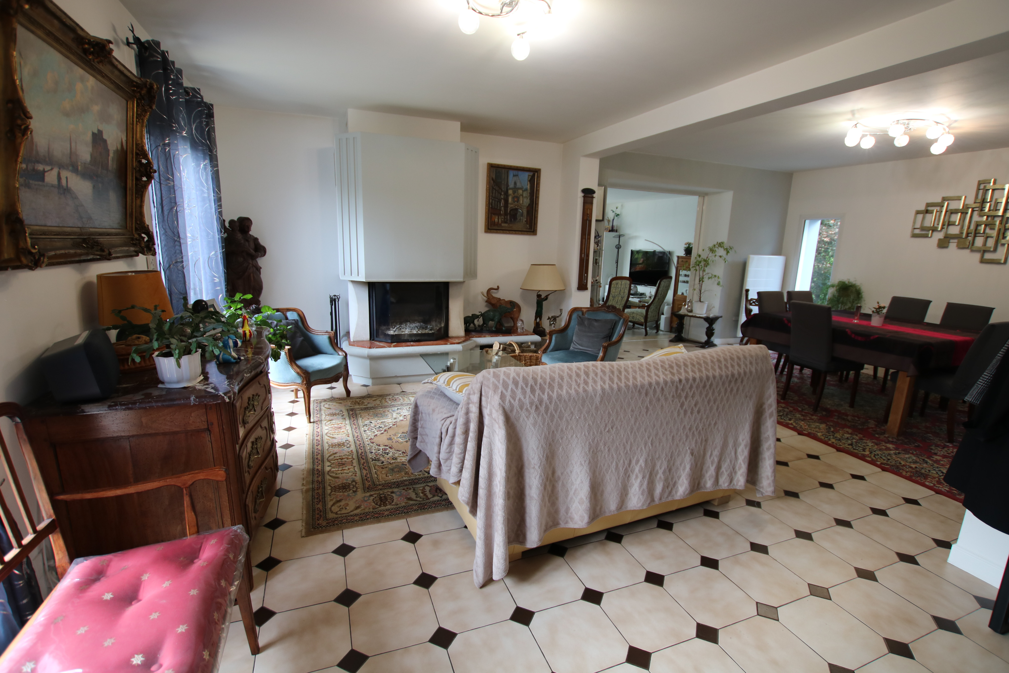 Dans un secteur recherché, vivable de plain-pied, Pavillon sur sous-sol complet (garage, cave, atelier, lingerie) aux beaux volumes, édifié sur environ 800 m² de terrain clos. Il offre : une belle entrée avec placards, grande cuisine aménagée et équipée, agréable pièce de vie lumineuse avec cheminée insert, grand salon, une chambre, salle de bains, wc. A l'étage palier desservant quatre belles chambres avec placards, salle de douches avec wc, bureau. Chauffage électrique. Portail automatique. Piscine couverte avec pompe à chaleur. Pavillon en très bon état ! N'attendez pas, venez le visiter !!!! Réf 6699