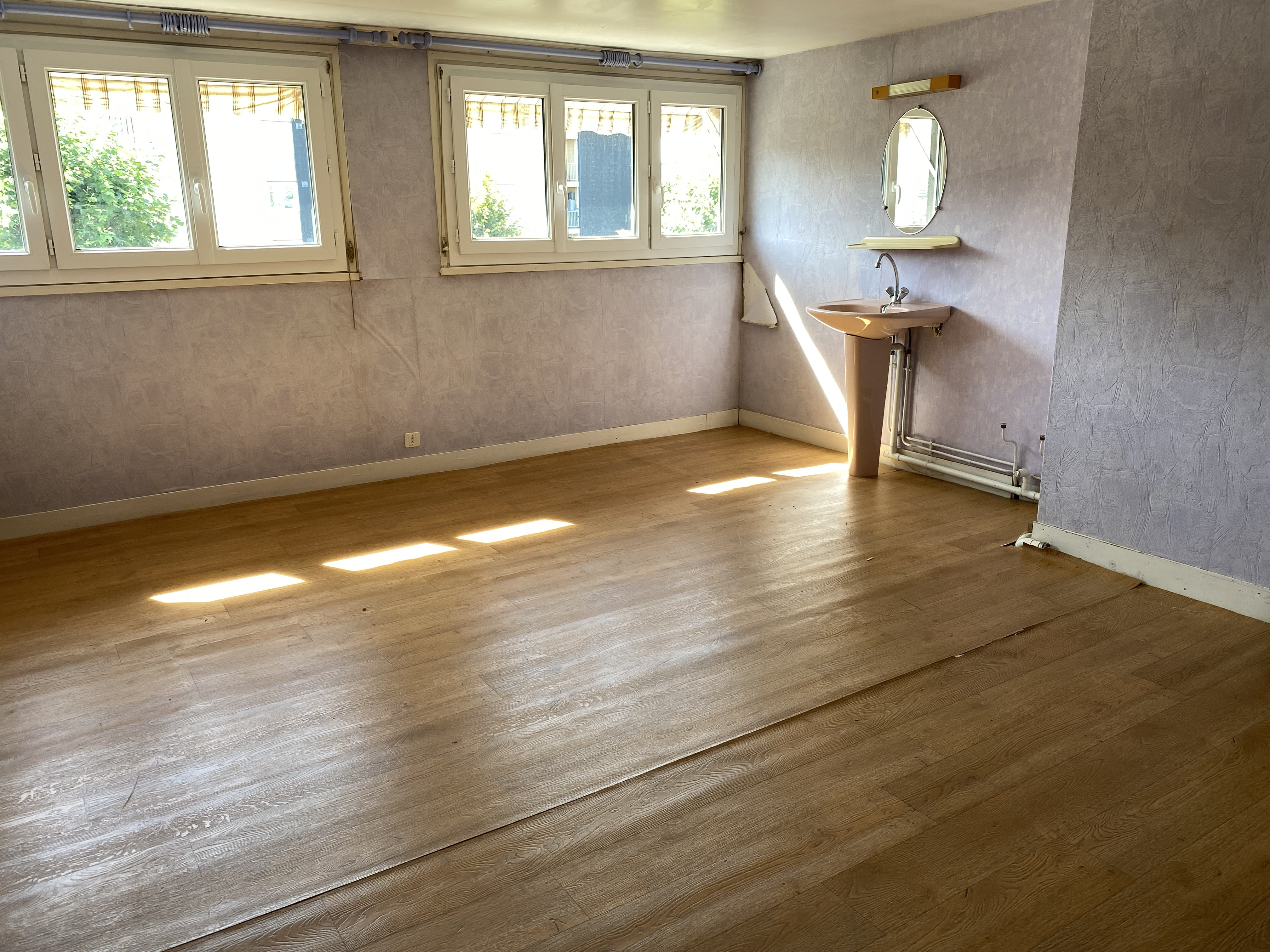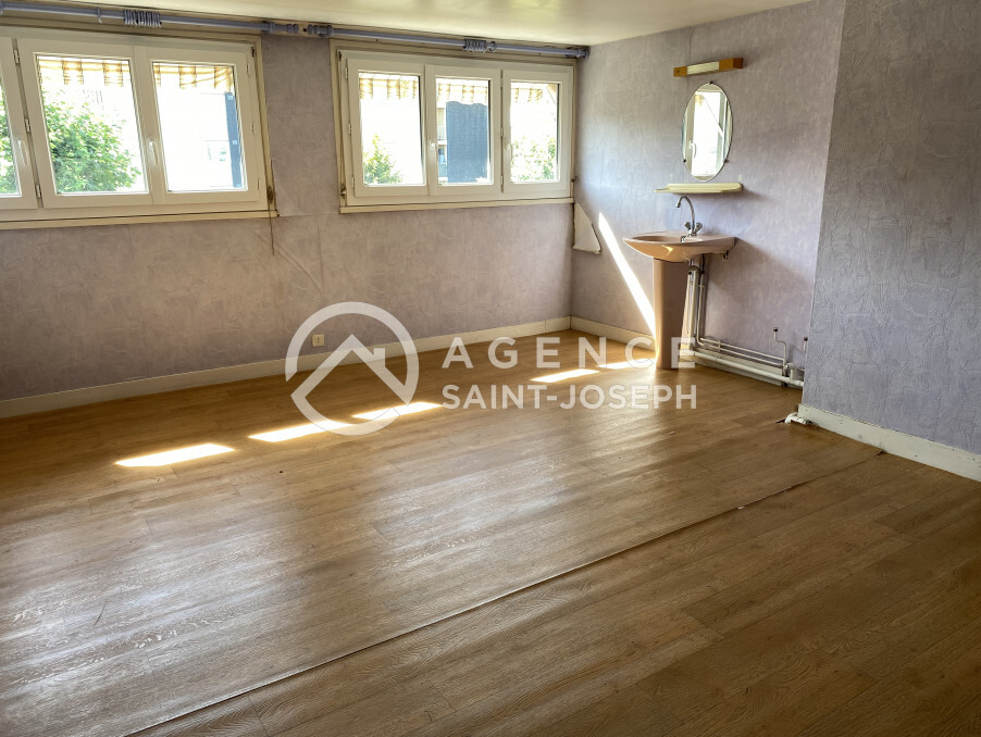 Réf. 6649 - Commerces, écoles et collège à pieds. Maison de ville avec terrain sans vis à vis offrant séjour, salon, cuisine indépendante, salle d'eau/wc au rez de chaussée, trois chambres, salle d'eau et un bureau à l'étage. Chauffage neuf par pompe...