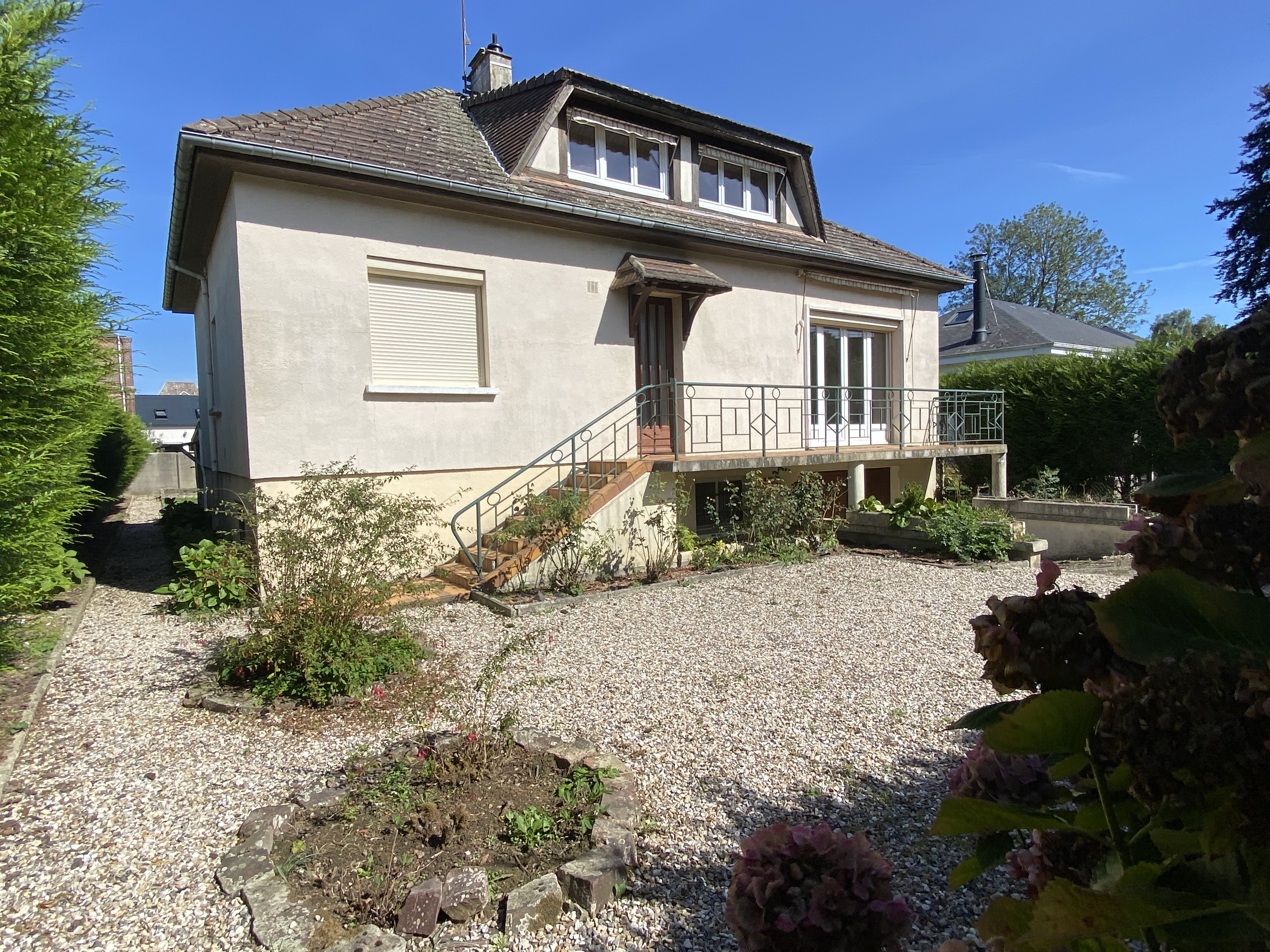 Pavillon traditionnel, VIVABLE DE PLAIN-PIED, élevé sur sous-sol complet, comprenant cuisine (11 m²), séjour (32 m²), véranda, salle de bains, wc séparé, deux chambres (10,80 m² et 11,10 m²). A l'étage une chambre de 20 m² et une partie de grenier aménageable. Chauffage fuel. Chaudière VIESSMANN de 2020. Huisseries en double vitrage PVC. Jardin de 625 m². Réf 7129