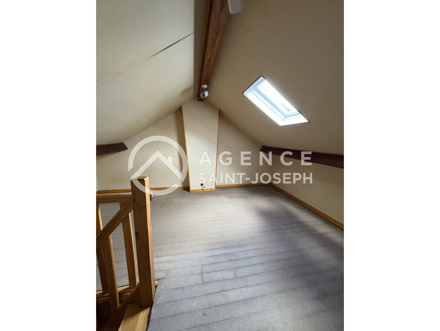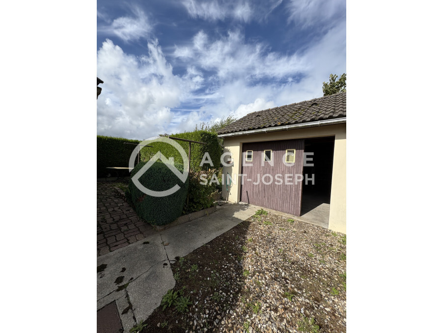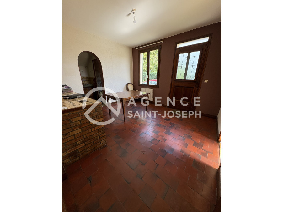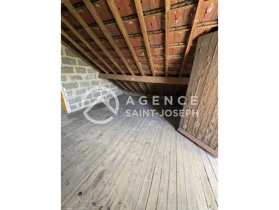 Maison avec jardin d'environ 300 m², comprenant une cuisine et un grand coin repas (14,25 m²), une petite véranda, une arrière cuisine (3,35 m²), un salon (20 m²), une salle de douche avec wc, une chambre (9,16 m²). A l'étage une chambre. Garage de 17 m². Grenier très facilement aménageable (possibilité d'une chambre supplémentaire). Chauffage électrique. Réf 7136