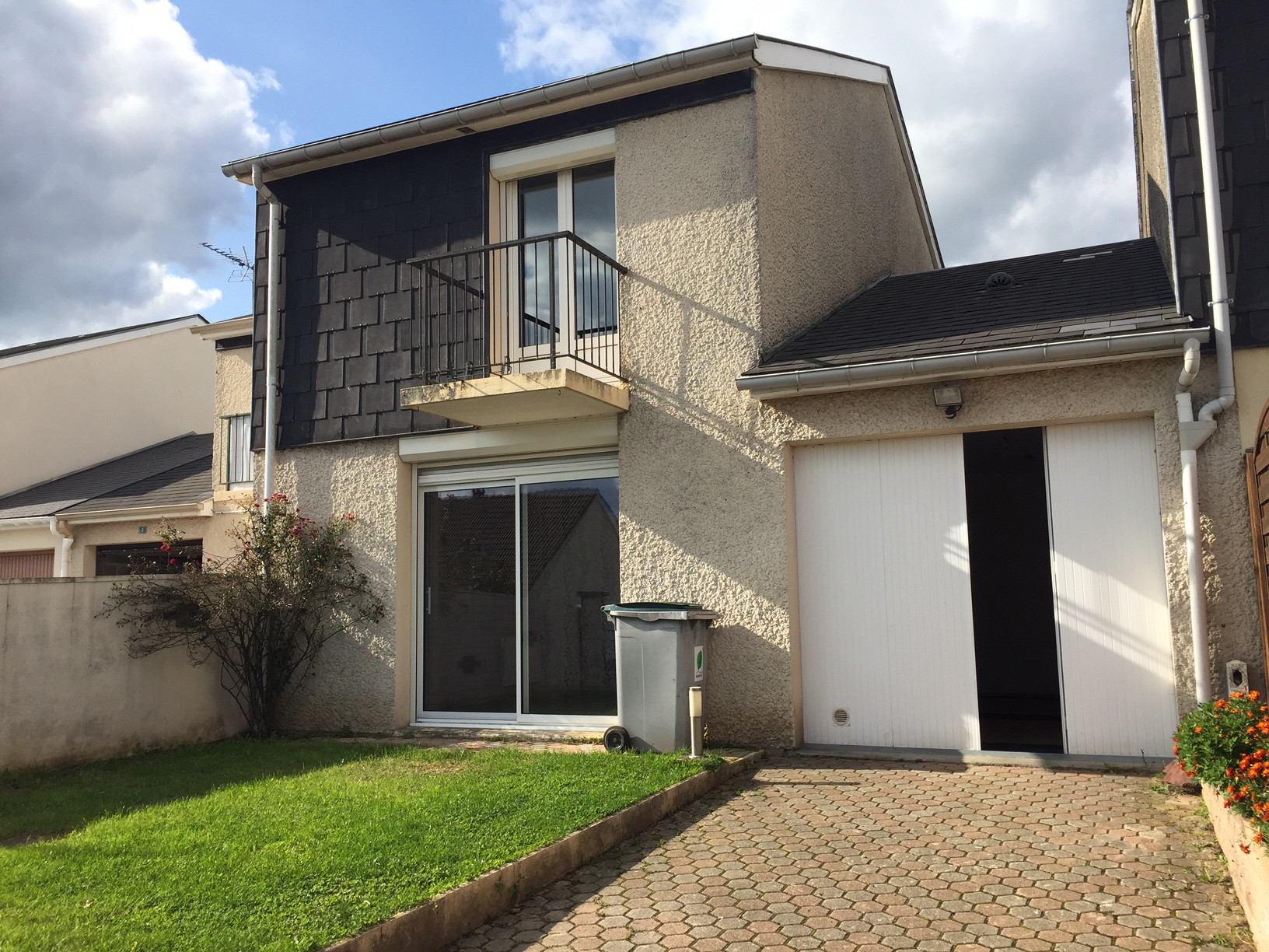 Maison mitoyenne des deux côtés, offrant : une entrée, un séjour/salon, une cuisine aménagée et équipée (plaque, hotte, lave vaisselle), WC et une chambre. A l'étage un dégagement avec placard, deux chambres et une salle de bains. Garage attenant. Jardin clos de 300 m². Cabanon de jardin. Chauffage électrique. Menuiseries en double vitrage et volets roulants. Assainissement collectif. Réf 7154