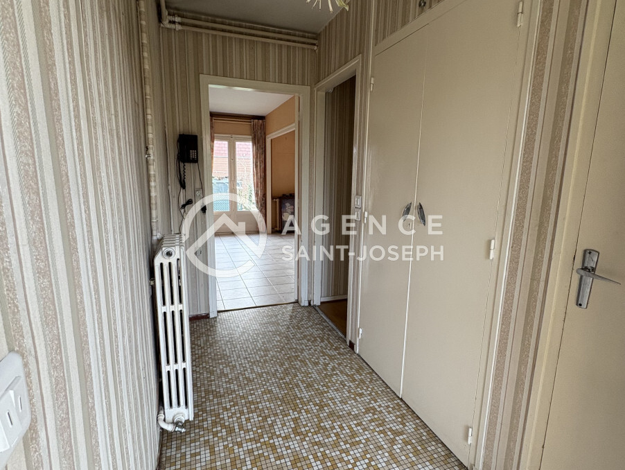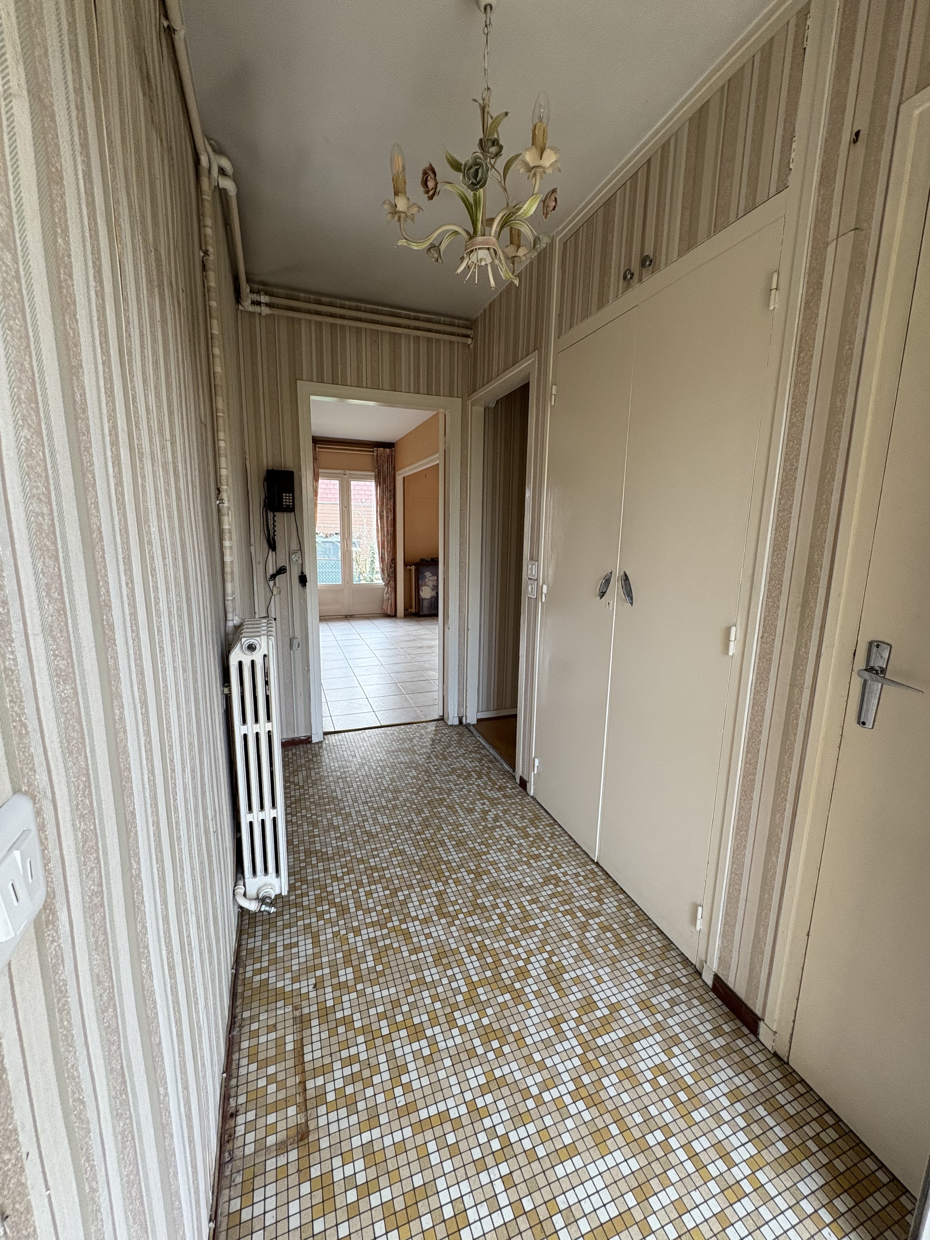Maison en briques avec jardin d'env. 300 m². Comprenant cuisine aménagée, salon, séjour, wc. A l'étage palier, 3 chambres dont une avec dressing, bureau, salle de bains (baignoire et douche) avec wc. Grenier. Chauffage gaz...