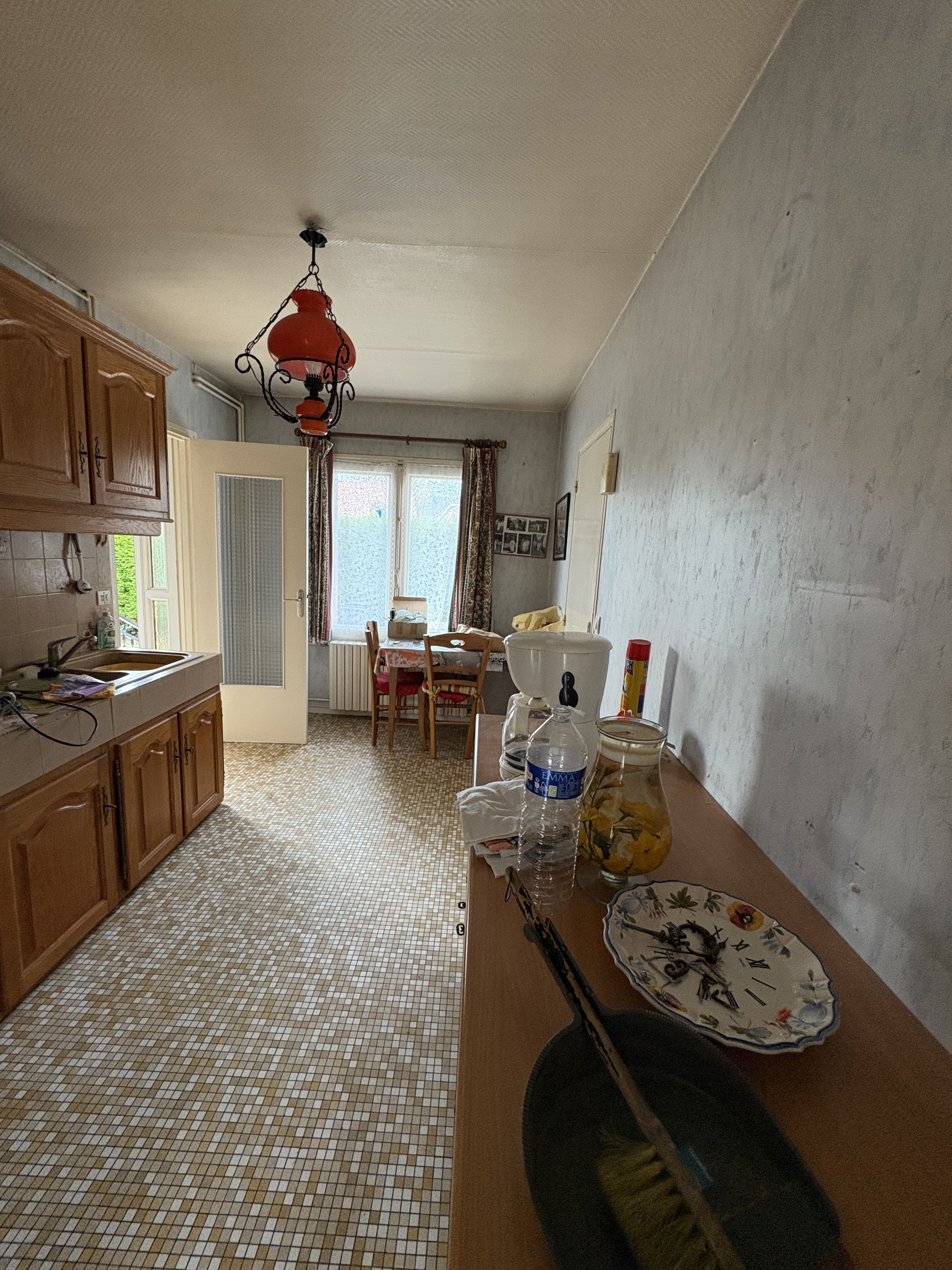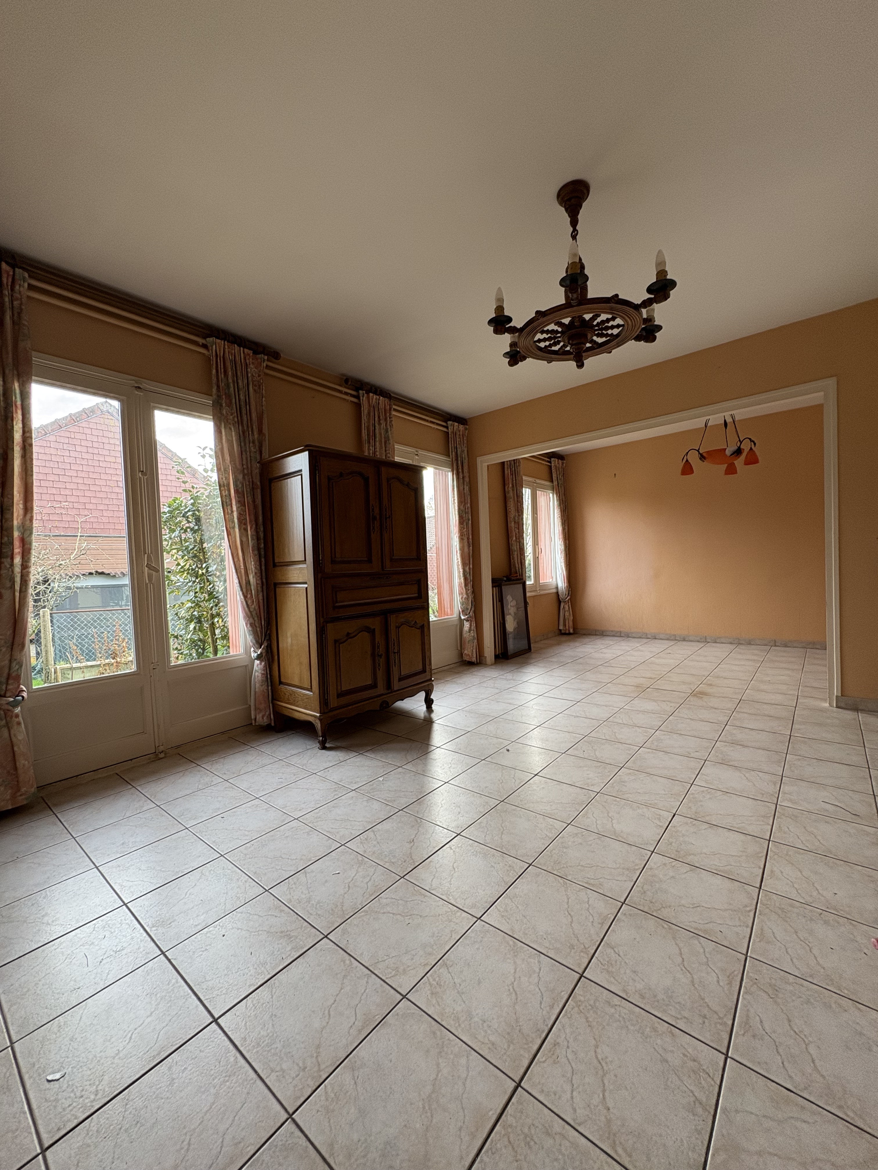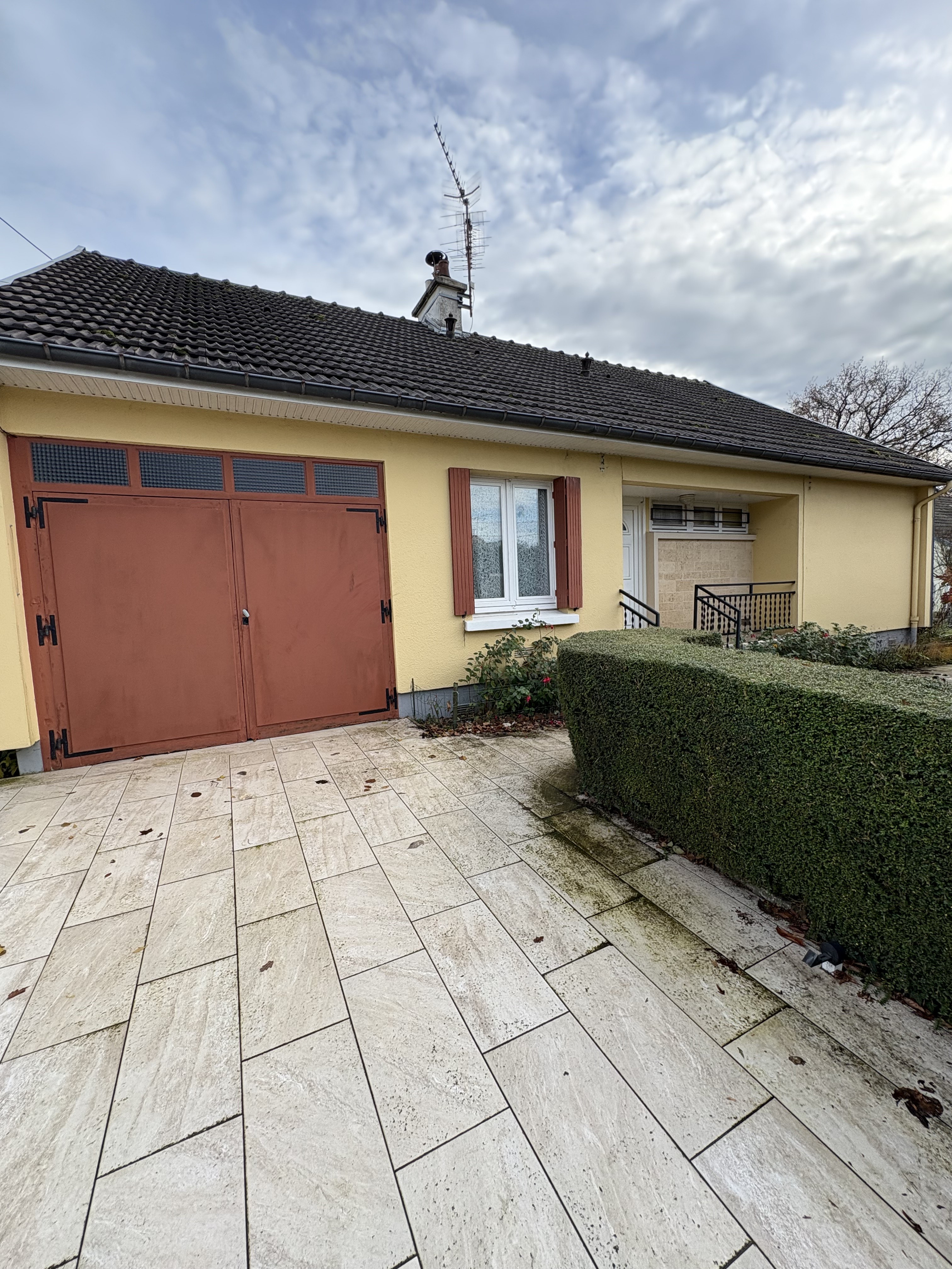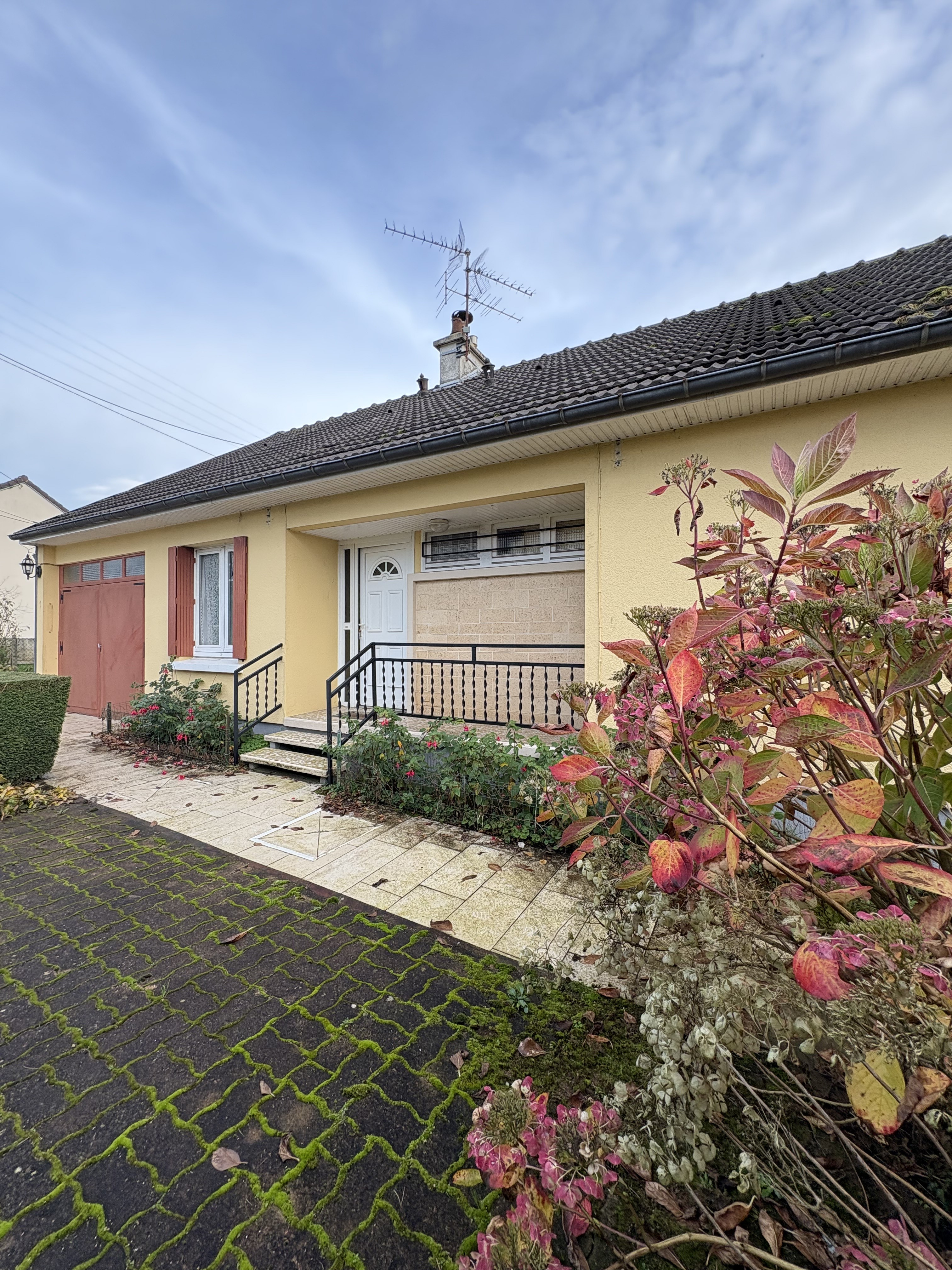 Pavillon individuel de plain-pied comprenant une entrée avec placards, une cuisine aménagée, un séjour/salon de 28 m² , une salle de douche, deux chambres et un WC indépendant. Garage attenant et grenier. Chauffage au gaz de ville. Jardin paysager d'env. 490 m². REF 7179